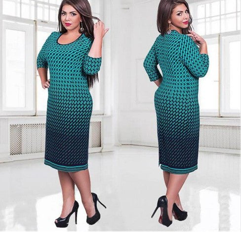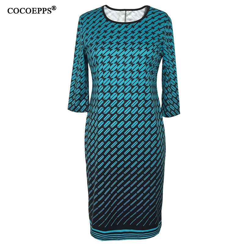 Gender: WomenWaistline: NaturalDecoration: NoneSleeve Style: RegularPattern Type: PrintStyle: WorkMaterial: Polyester,SpandexSeason: WinterDresses Length: Mid-CalfNeckline: O-NeckSilhouette: SheathSleeve Length: Three Quarterplus size: L XL XXL XXXL 4XL 5XL 6XLStyle: Autumn Winter dressFit: Fits true to size, take your normal size