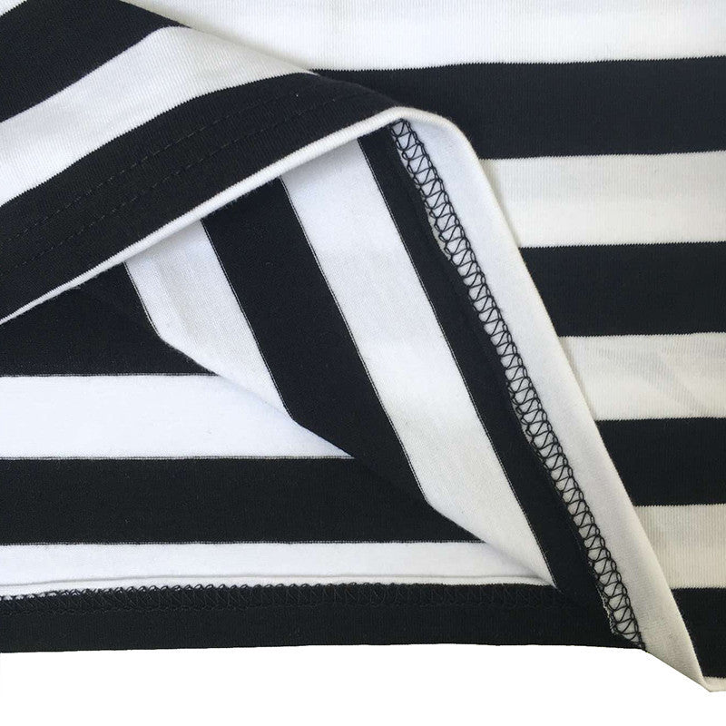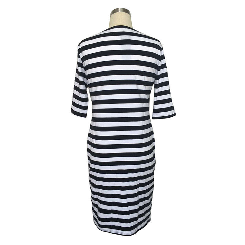 Gender: WomenWaistline: NaturalDecoration: NoneSleeve Style: RegularPattern Type: StripedStyle: CasualMaterial: Polyester,SpandexSeason: AutumnDresses Length: Knee-LengthNeckline: O-NeckSilhouette: LooseSleeve Length: Halfplus size: L XL XXL XXXL 4XL 5XL 6XL dressStyle: summer dresssummer dress: Knee-Length dressFabric Type: Broadcloth