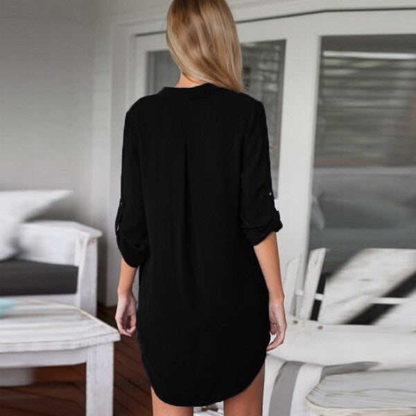 Gender: WomenMaterial: Linen,Polyester,LaceNeckline: V-NeckSeason: SummerStyle: CasualSleeve Style: RegularSilhouette: LoosePattern Type: SolidDresses Length: Above Knee, MiniSleeve Length: FullDecoration: NoneWaistline: NaturalColor: White,Black,BlueSeason: Spring,Summer,Autumn