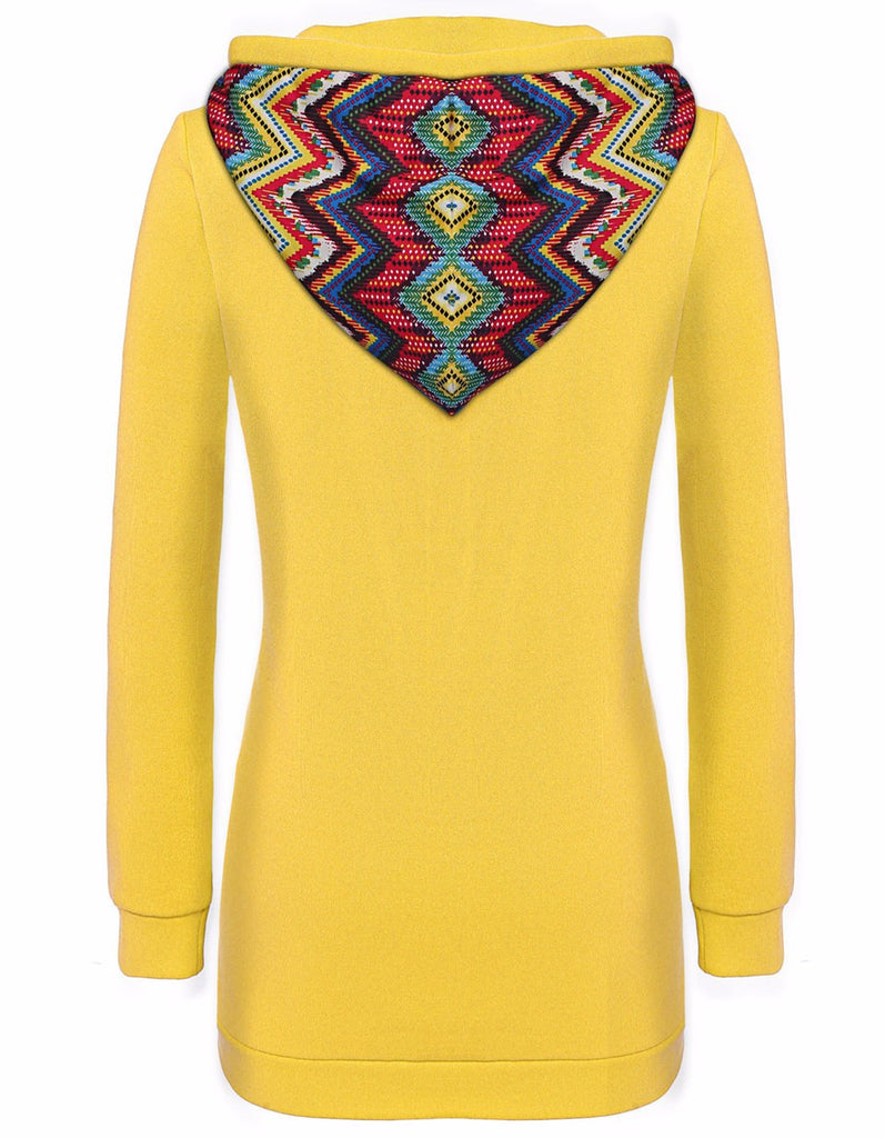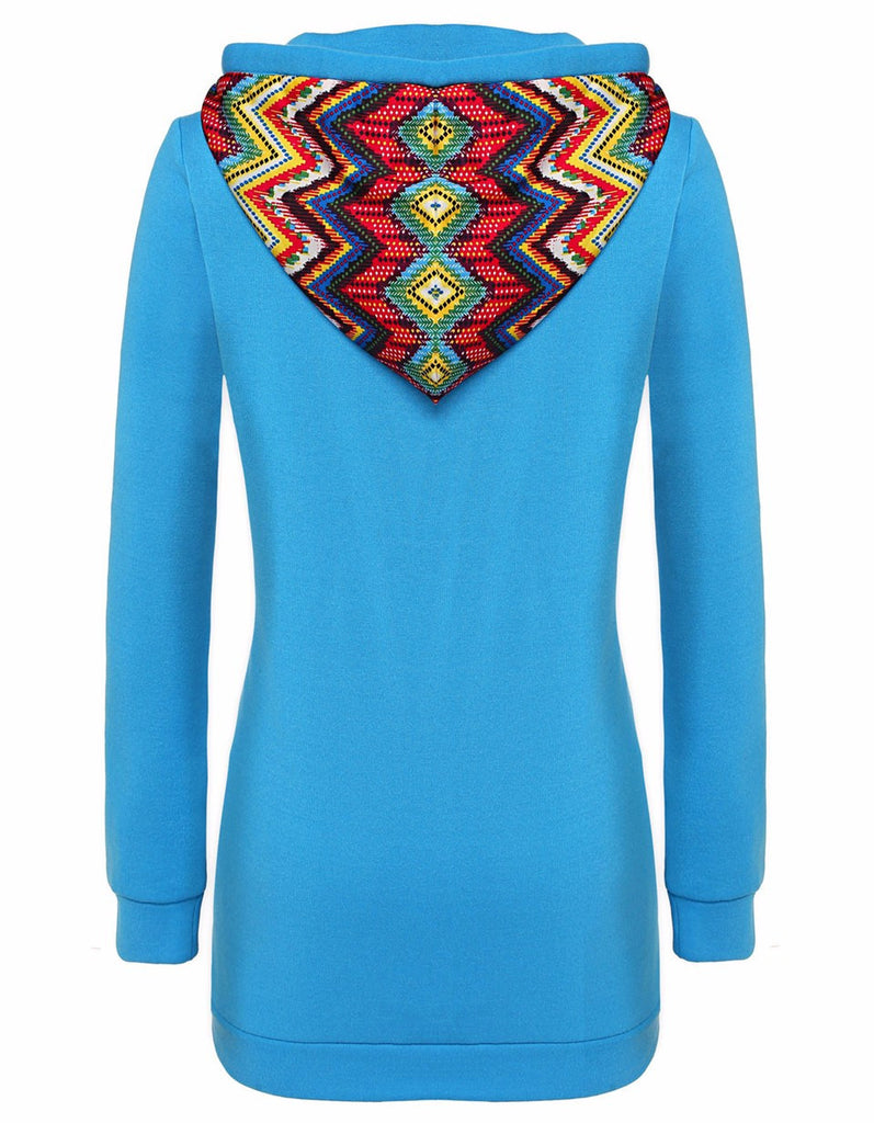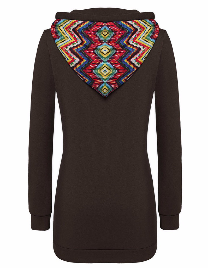 Fashion Patchwork Pullover Hoodie Floral Print Long Sleeve