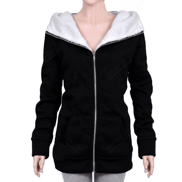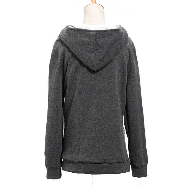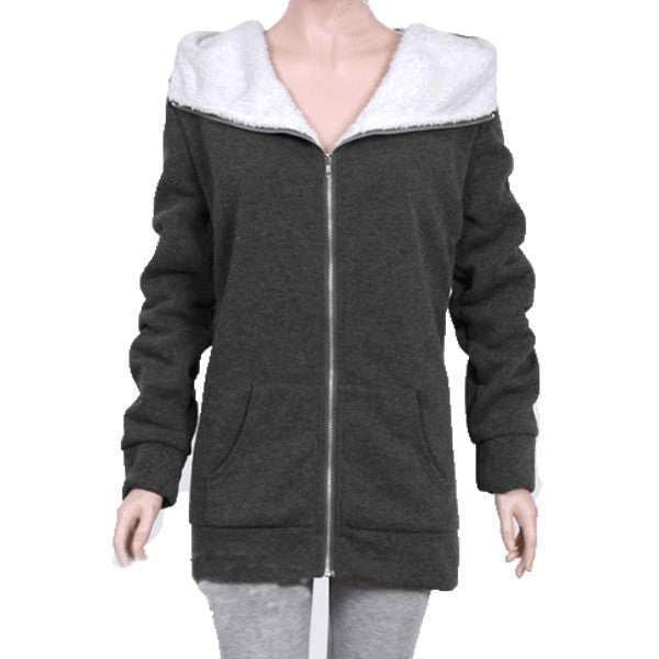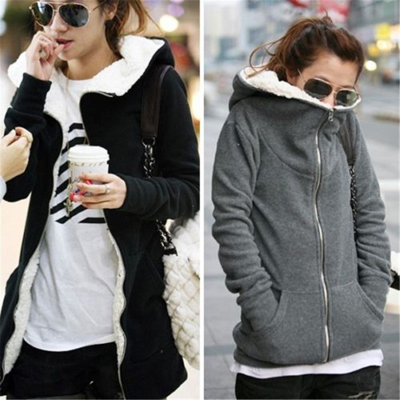Gender: WomenItem Type: Hoodies,SweatshirtsCollar: O-NeckStyle: CasualFabric Type: BroadclothClothing Length: RegularMaterial: Polyester,CottonSleeve Style: RegularPattern Type: SolidHooded: YesType: Zip-upSleeve Length: FullWeight: 530Color: Black,GraySize: S M L XL 2XL 3XL 4XLSeason: Autumn, Winter