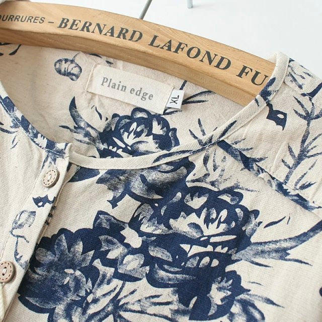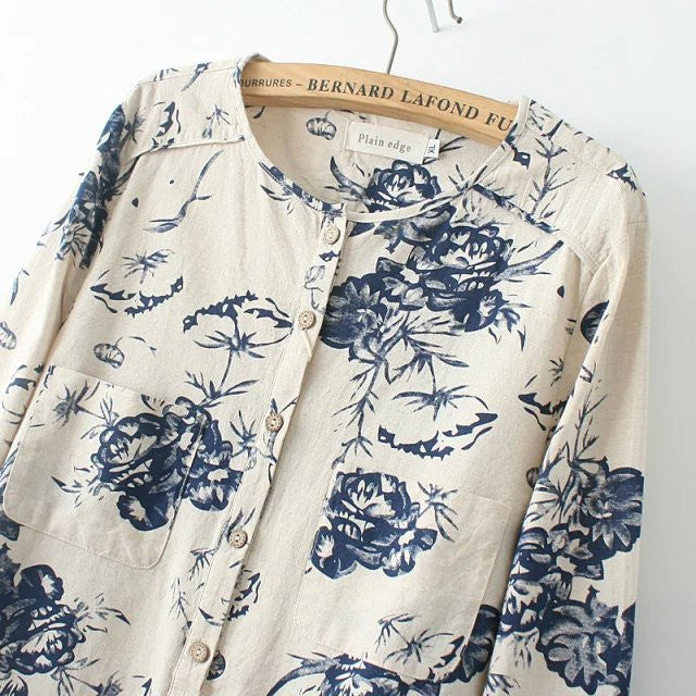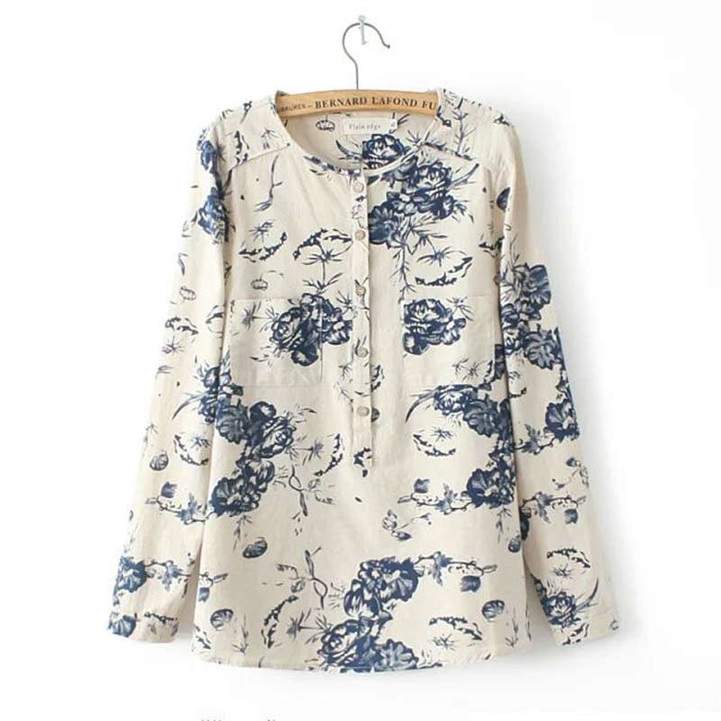 Gender: WomenSleeve Length: FullPattern Type: PrintMaterial: Cotton,LinenStyle: CasualClothing Length: RegularSleeve Style: RegularDecoration: ButtonCollar: O-NeckFabric Type: BroadclothThe style category: blouse