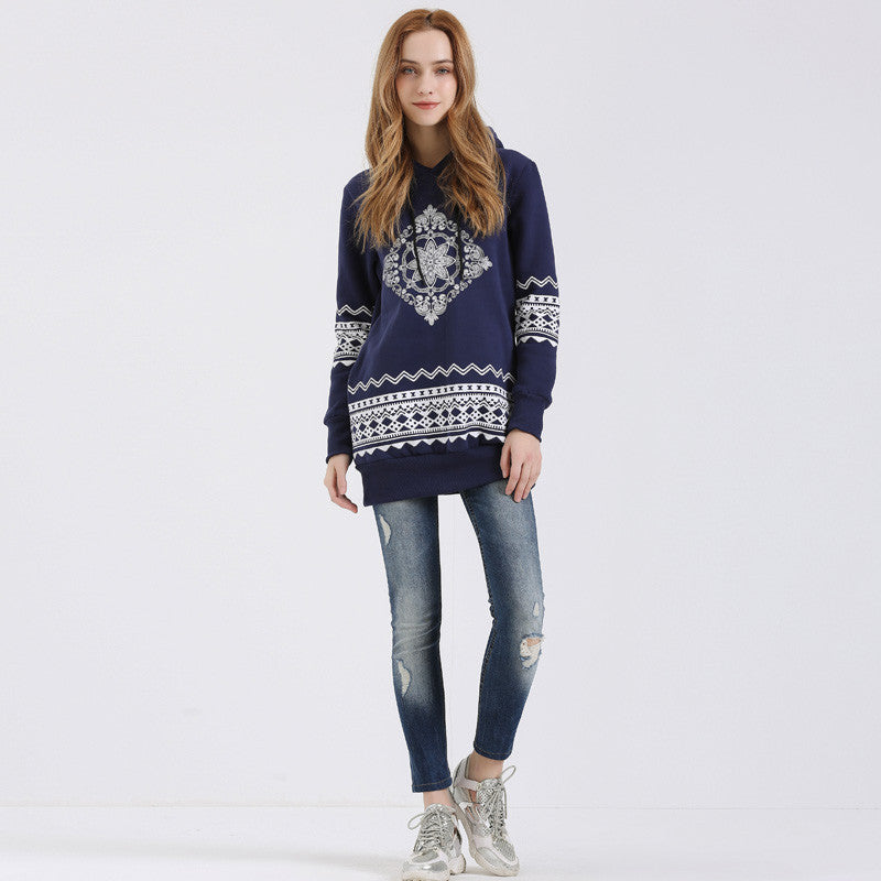 Gender: WomenItem Type: Hoodies,SweatshirtsCollar: O-NeckStyle: CasualType: PulloversFabric Type: BroadclothMaterial: Polyester,CottonSleeve Style: RegularHooded: YesClothing Length: LongSleeve Length: FullPattern Type: Geometric