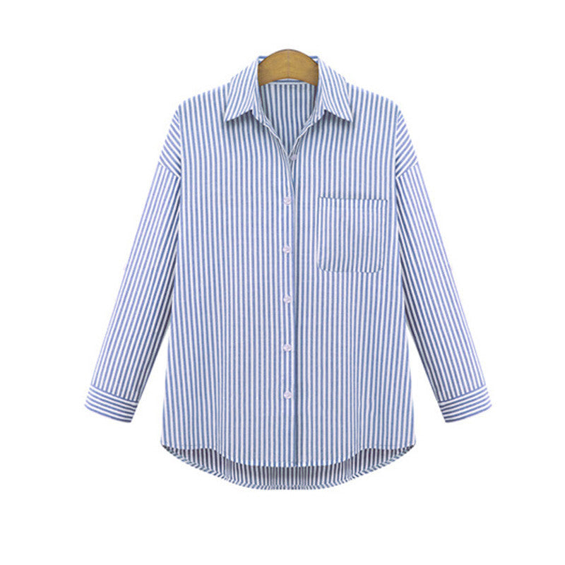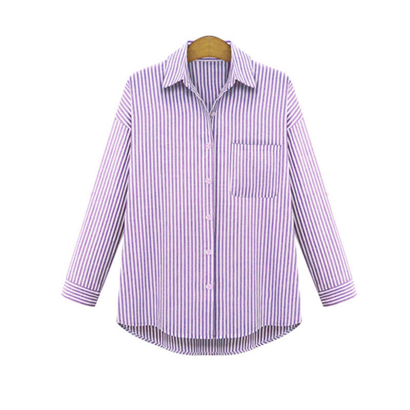 Gender: WomenSleeve Length: FullDecoration: PocketsStyle: CasualPattern Type: CharacterCollar: Turn-down CollarFabric Type: BroadclothMaterial: Cotton,PolyesterClothing Length: RegularSleeve Style: RegularProduct Category: Blouses & ShirtsItem Type: TopsBlouses Size: L-5XL(optional)Suit for Seasons: Summer, Autumn,SpringGender & Style: Women&FashionColor On Sale: Blue,Fuchsia,Sky Blue,Purple,Dark Greysleeve length: Long