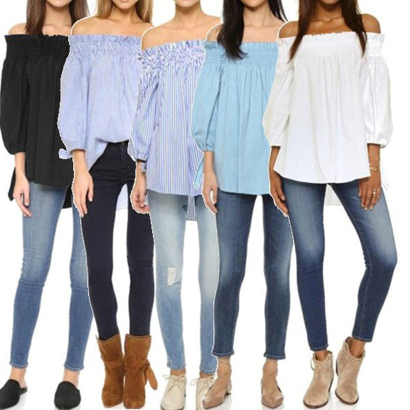 Gender: WomenStyle: FashionPattern Type: SolidSleeve Length: Three QuarterFabric Type: BroadclothDecoration: BowClothing Length: RegularCollar: Slash neckSleeve Style: RegularMaterial: Polyester